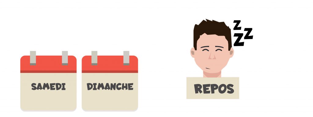 Le samedi et le dimanche sont des jours consacré au repos. En effet, se reposer est une étape indispensable pour pouvoir récupérer et progresser. Ça peut être aussi occasion de solliciter d’autres groupes musculaires ou capacité physiques si l’état de fatigue le permet.